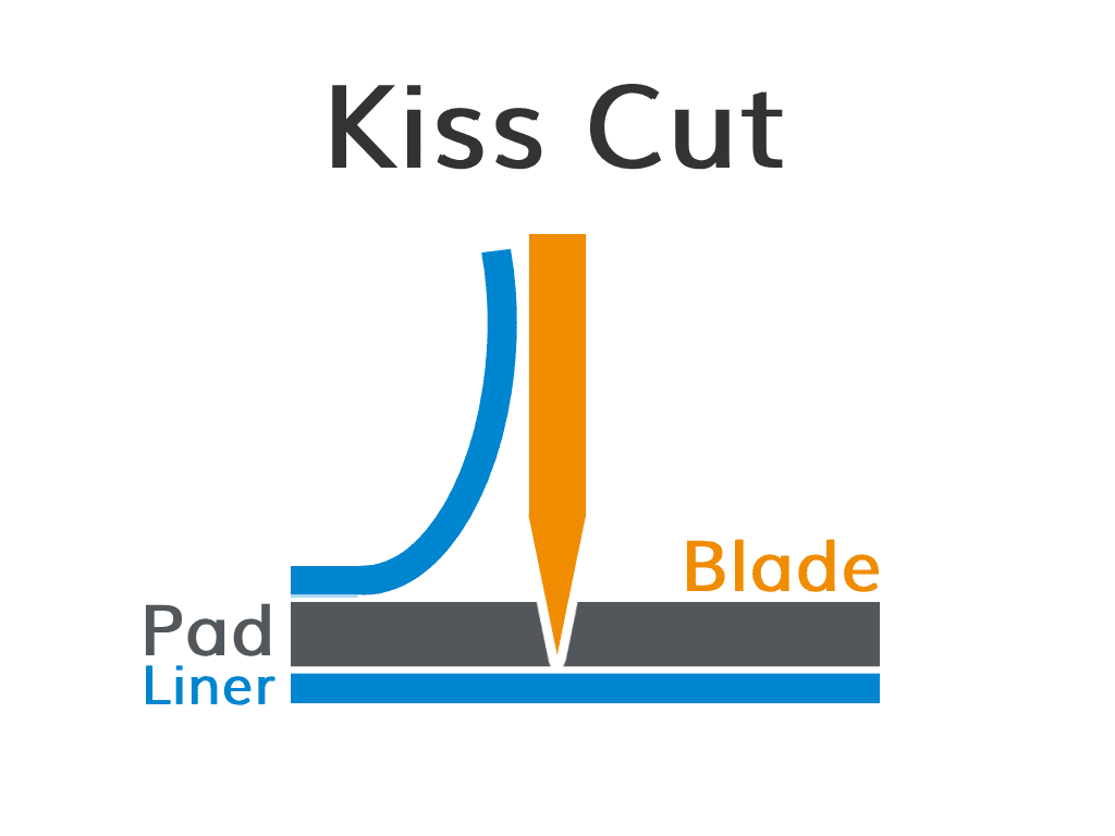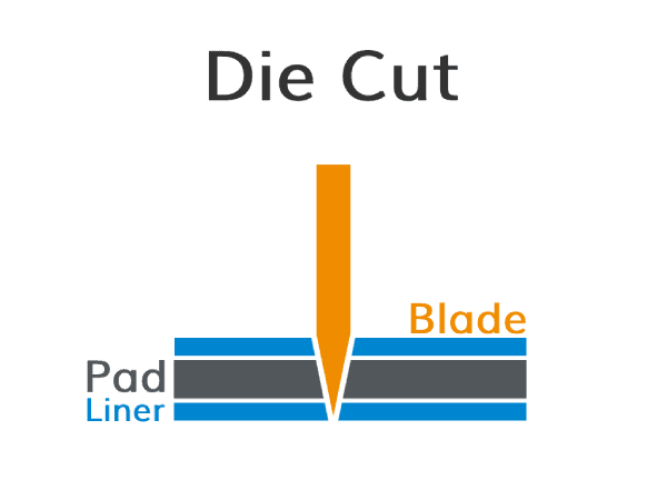 Kiss cutting cuts only the thermal pad, leaving the liners on both sides intact.