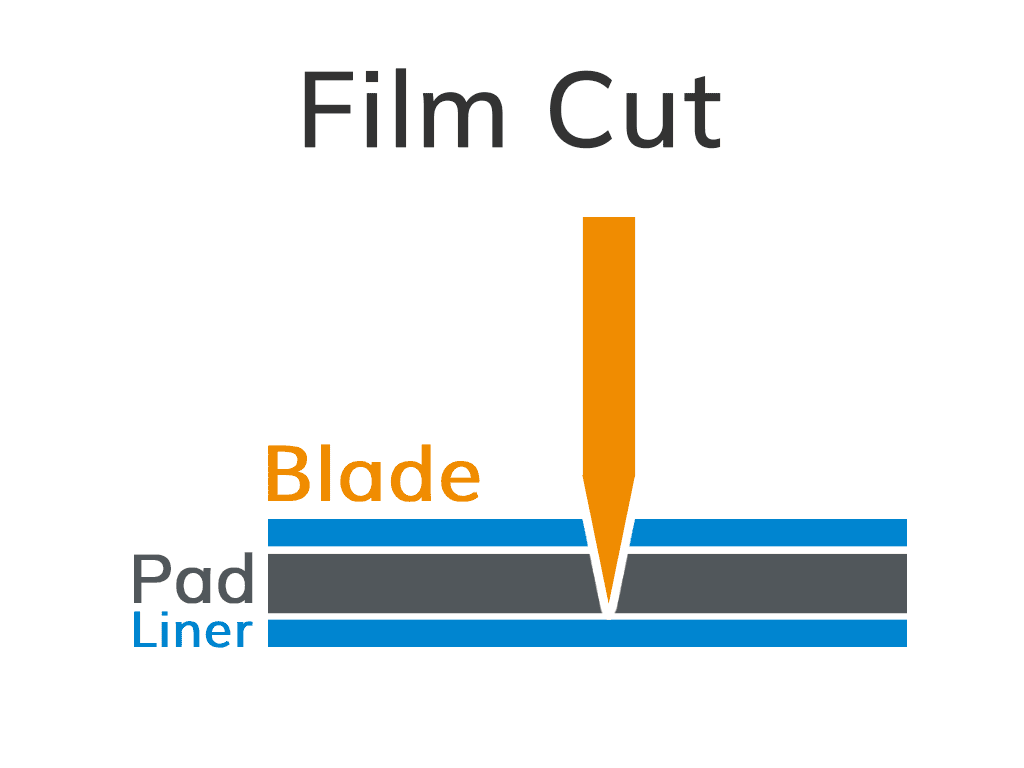 Film cutting cuts through the upper liner and the thermal pad together, streamlining the application process.
